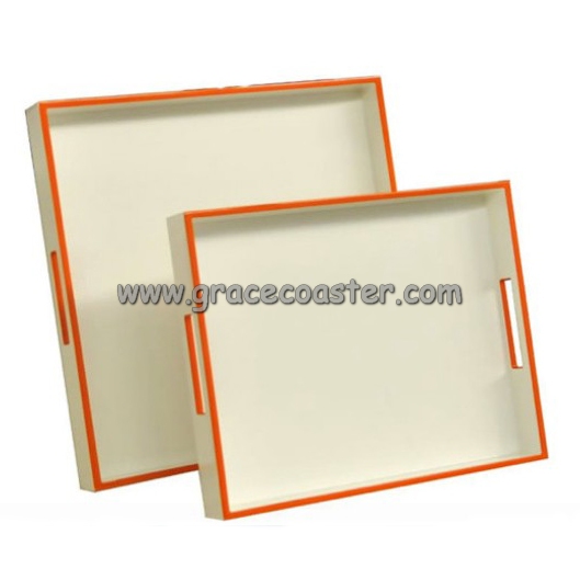 Lacquered Trays, White And Orange Edge